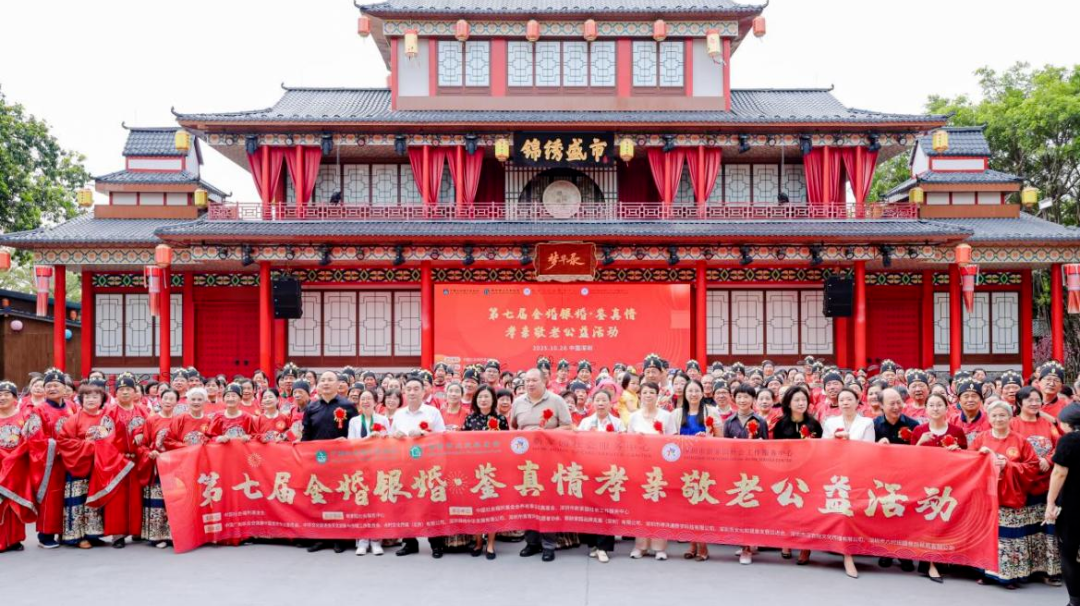 2025年10月26日,秋陽煦暖,情意綿長。深圳錦繡中華·民俗村錦繡盛市廣場見證了一場跨越時光的浪漫盛典。數十對來自深港兩地的金婚、銀婚夫婦,身著典雅華美的漢服,在這片濃縮中華文明的景致之中,共同拉開了第七屆“金婚銀婚·鑒真情——孝親敬老公益活動”的動人序幕。這場由深圳錦繡中華鼎力支持舉辦的活動,不僅為長者們獻上深情的祝福,也為鵬城鐫刻下關于家庭幸福、愛情雋永與文化傳承的溫暖印記。